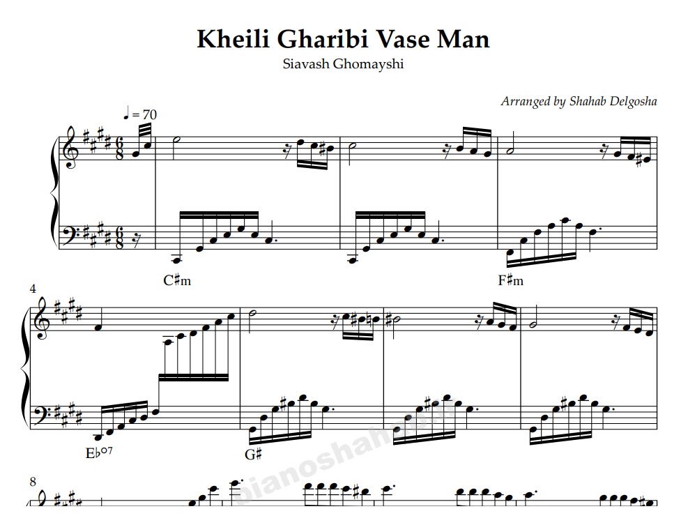 نت پیانو: خیلی غریبی واسه من