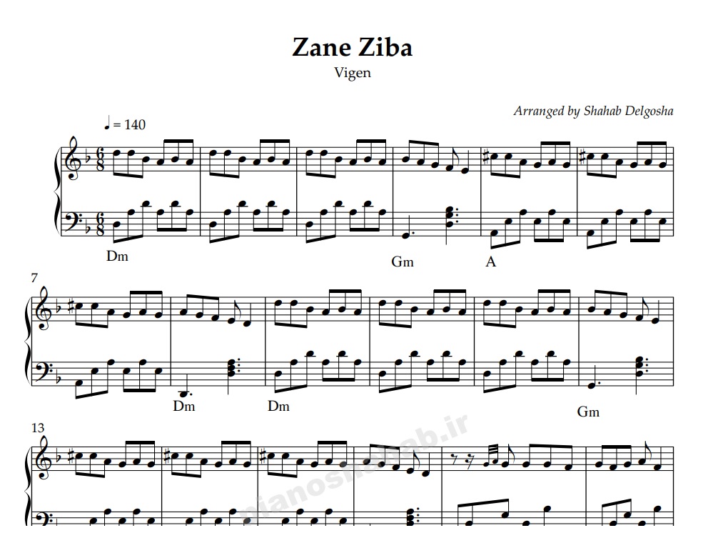 نت پیانو: زن زیبا