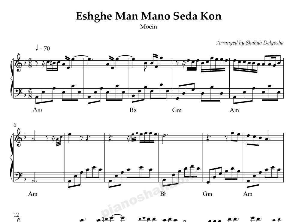 نت پیانو: عشق من منو صدا کن
